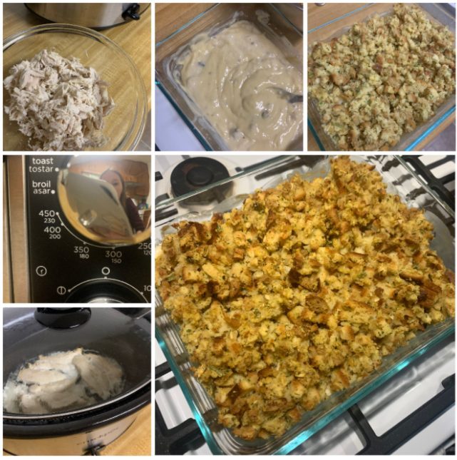On Monday, we had Chicken and stuffing casserole, in which I slow cooked the chicken the day before.